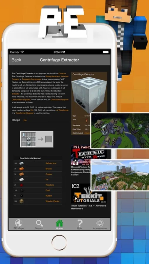 This app will help you with mods in Minecraft without having to get out of Minecraft. You can look on your iPhone/iPad/iPod and learn what is what for and how you get it.