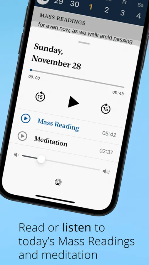 • Listen to the Mass Readings and Meditations each day.