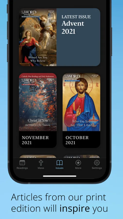 "The Word Among Us" is the largest daily devotional for Catholics (print & digital editions available). Beautifully designed for iPad and iPhone, The Word Among Us app is ad free and offers free trial subscription.