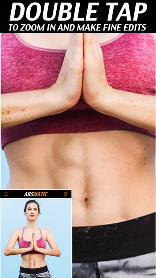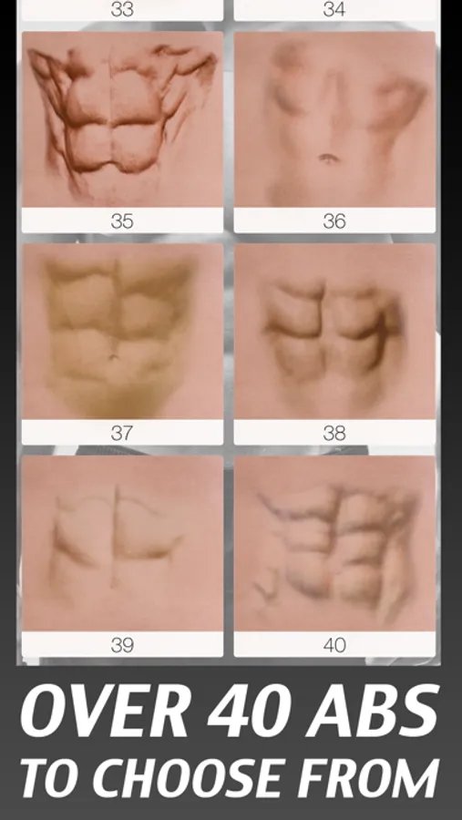 Simply load a photo showing your current abs into ABSmatic. Then add definition by applying one of our fully sculpted abs on top of your current abs.