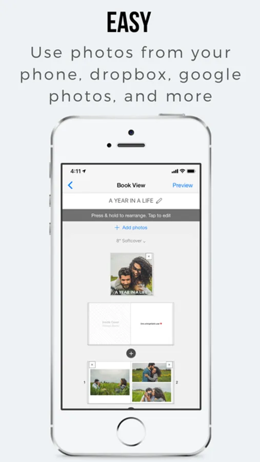 - 8x8 softcover, 8x8 hardcover, or 12x12 hardcover