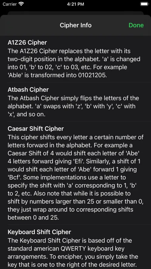 Cipher Sender includes some of the most popular ciphers and codes from throughout history including: