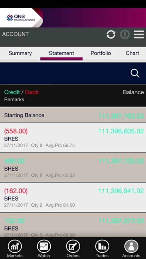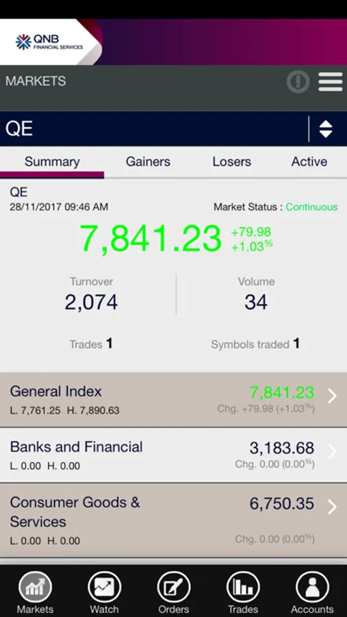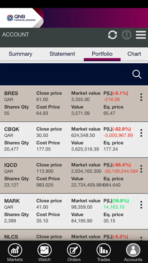 Access to the application is given for customers who have opened the trading accounts with QNB Financial Services .