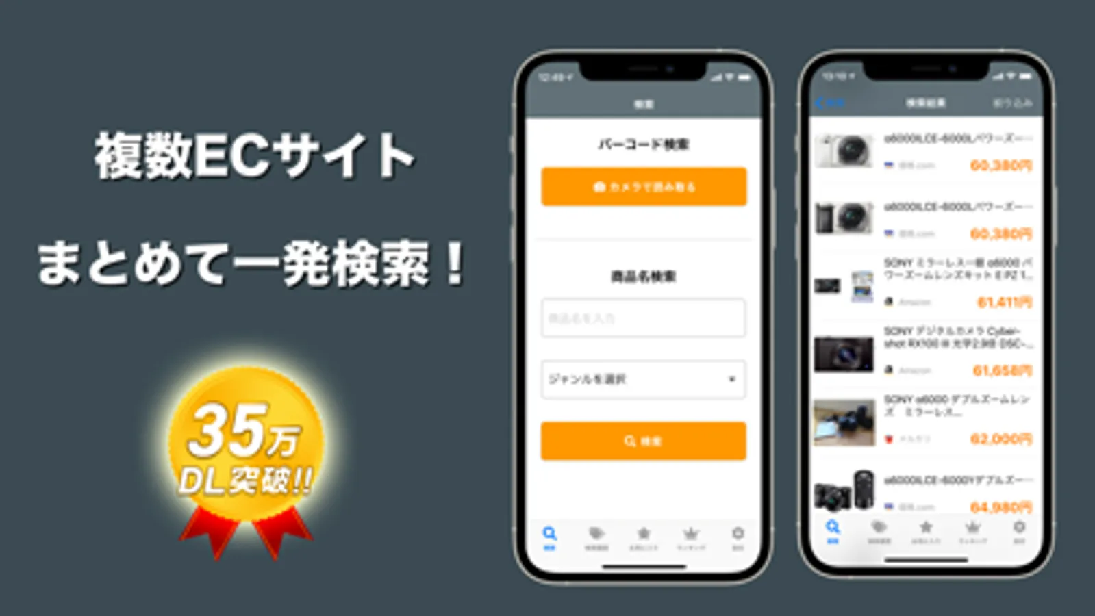 スマホアプリ35万DL突破!ECサイト横断検索アプリの決定版!