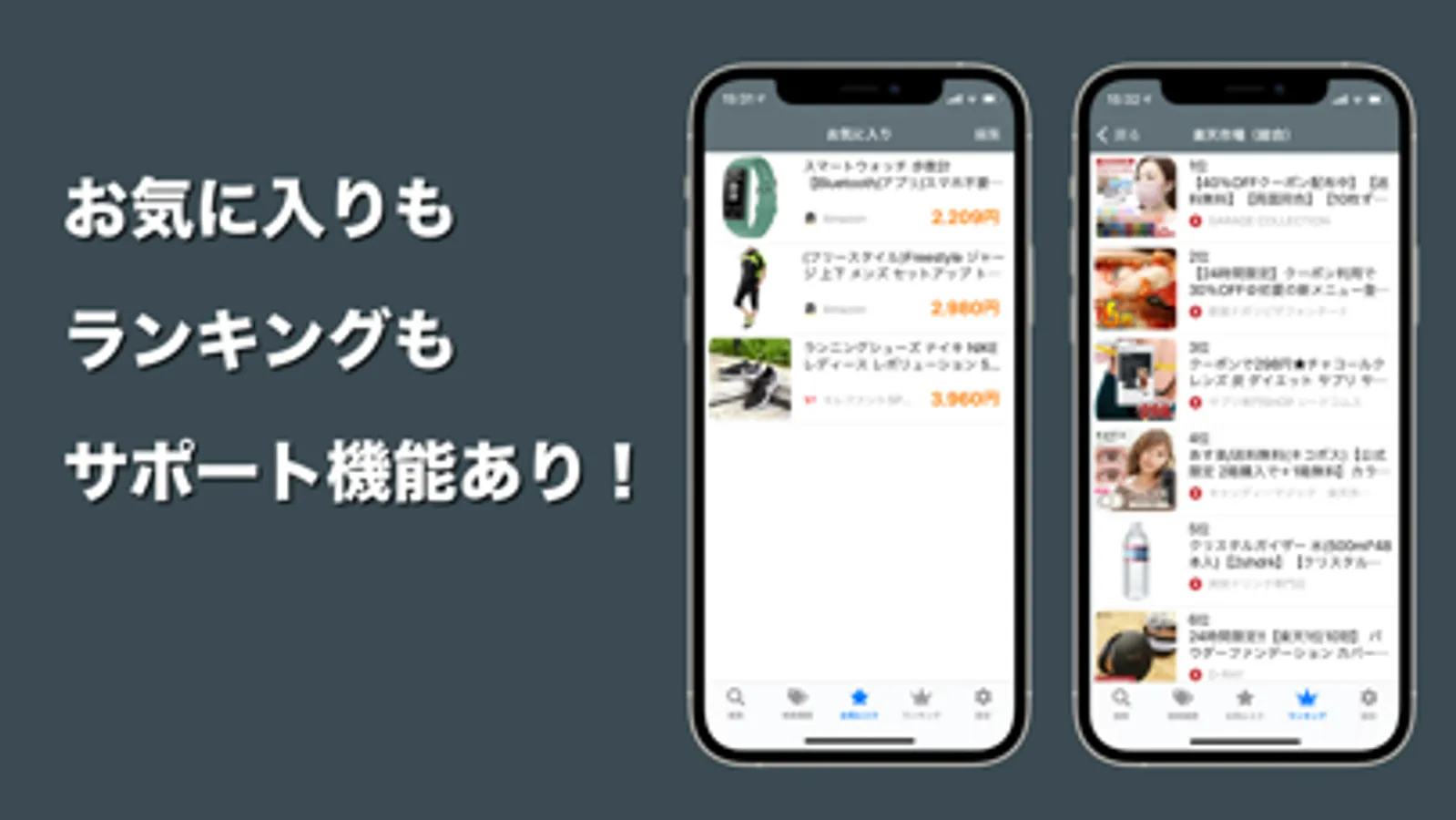 お気に入り登録や検索履歴、ランキング表示などお買い物を手助けする機能も盛りだくさん。