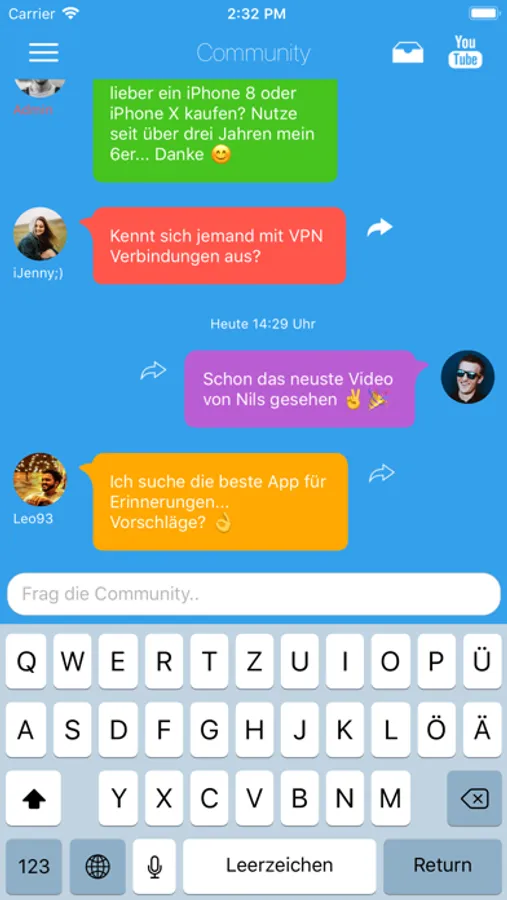 • Community Chat, in dem Du Dich über Themen austauschen und Fragen stellen kannst