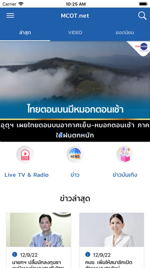 - Show the latest news separated by category with top headlines in Thai and English