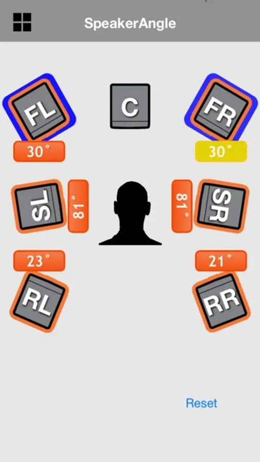 As you do so, SpeakerAngle's onscreen display shows you the angle, using red-green color coding to guide you through a range of recommended angles. Next, do the same for the paired speaker in your system until its icon's number box becomes yellow in color, indicating that both speakers are identically angled. A handy onscreen Reset button allows you to start from scratch at any time and experiment with different toe-in angles.