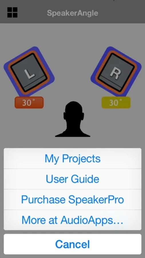 To use SpeakerAngle, simply create a stereo or surround sound project and name it. Then adjust your speakers so they are facing straight ahead. Place your iPhone, iPad, or iPod Touch on top of one of the speakers and press the corresponding onscreen icon, then rotate that speaker towards the listening position.