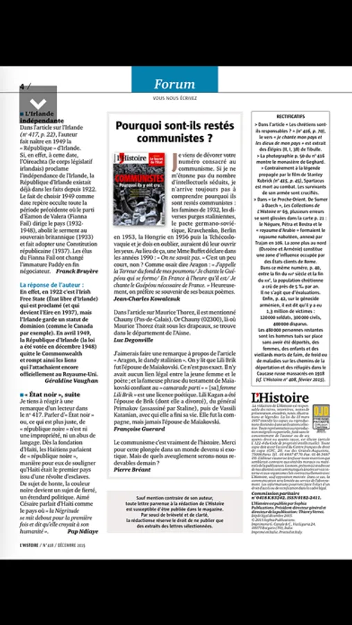 - La souscription depuis l'application est indépendante de tout abonnement papier ou via le site internet du magazine L'Histoire.