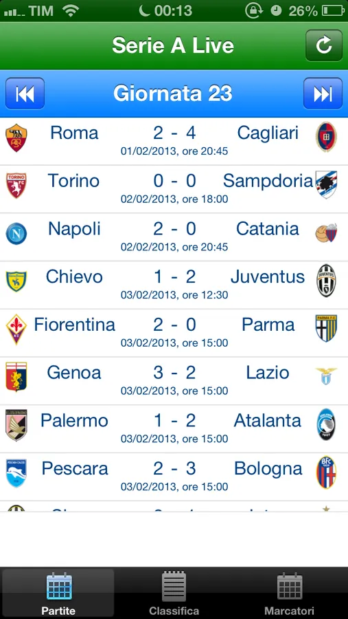 In più potrai visionare le prossime partite di campionato e quelle già svolte.