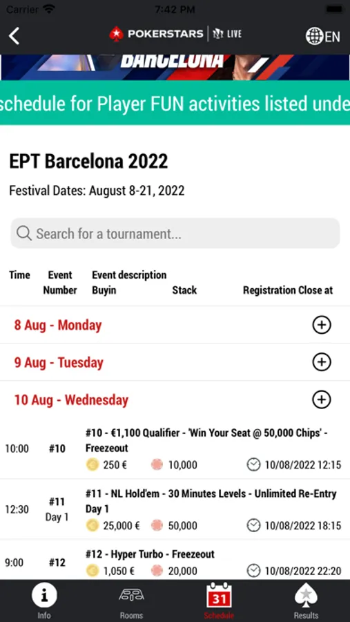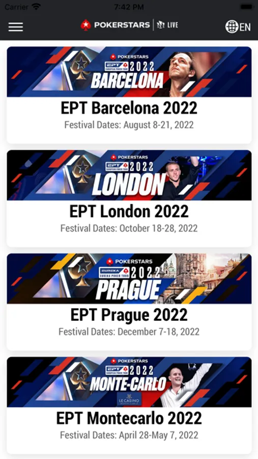 Download the PokerStars Live app now for everything you need to know about PokerStars Championship and PokerStars Festival events at your fingertips! The app is the essential tool for players wanting to take advantage of the the full live event experience.