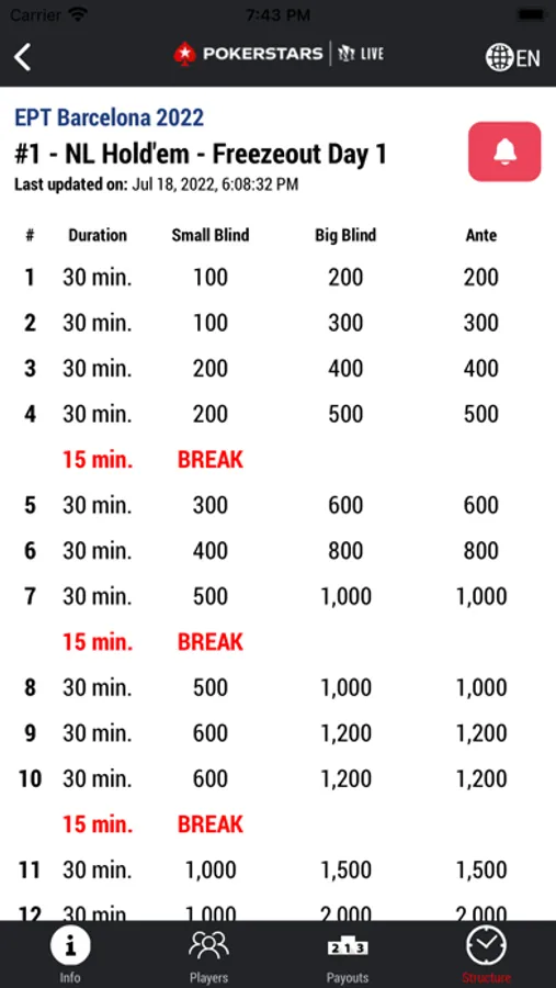 ~In addition to providing real-time tournament information, the PokerStars Live App also allows you to: