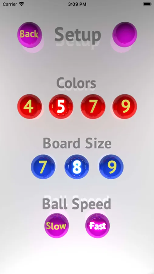 - Different sets of ball colors and game board sizes