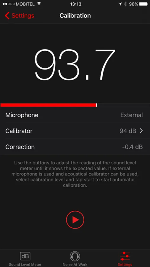 The initial calibration works incredibly well and is determined with testing in an anechoic chamber meant for calibration of professional Sound Level Meters. We do not recommend changing the initial calibration since we have established that the internal sensitivity of the microphones has insignificant variation between different iPhone models.