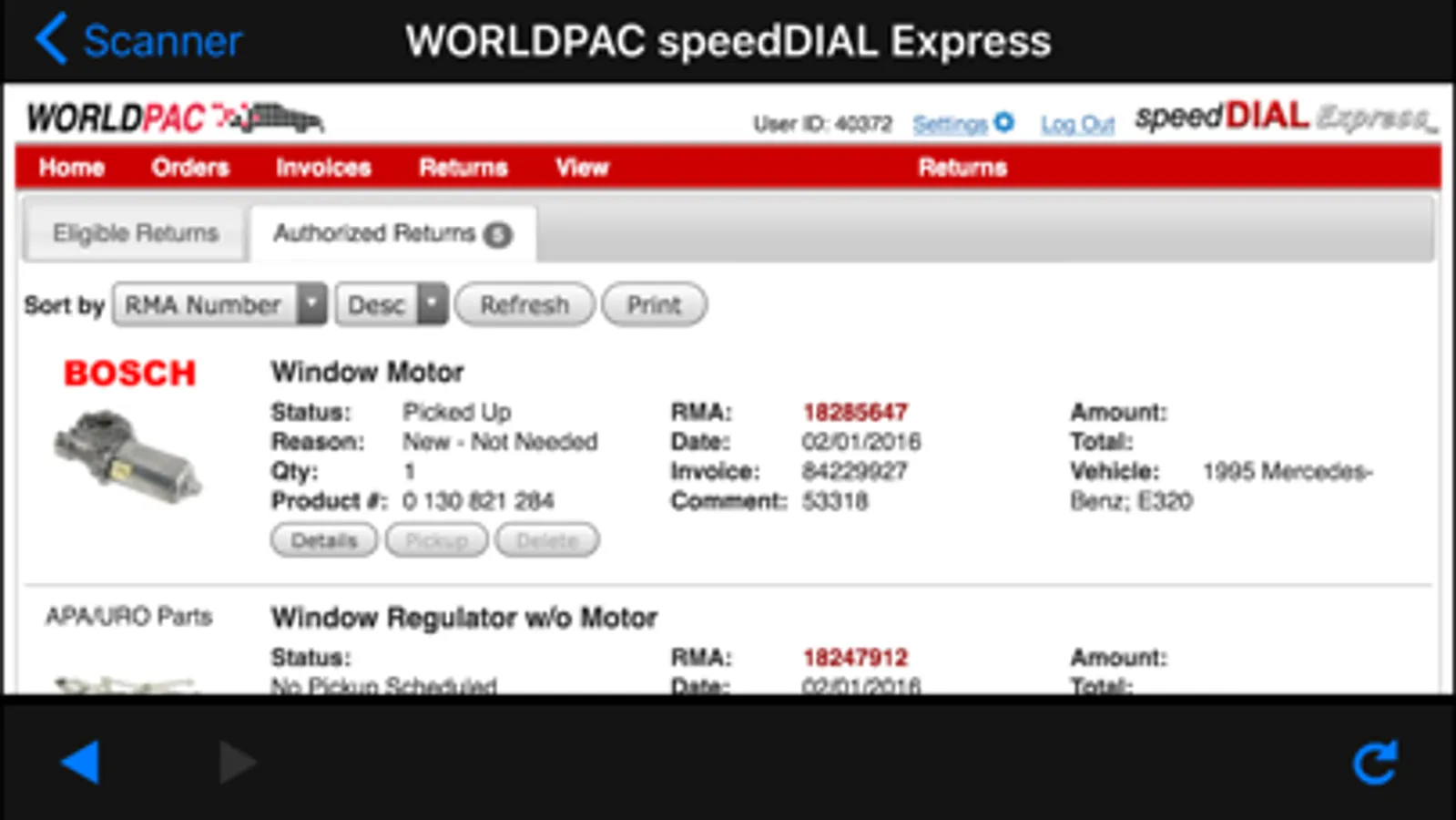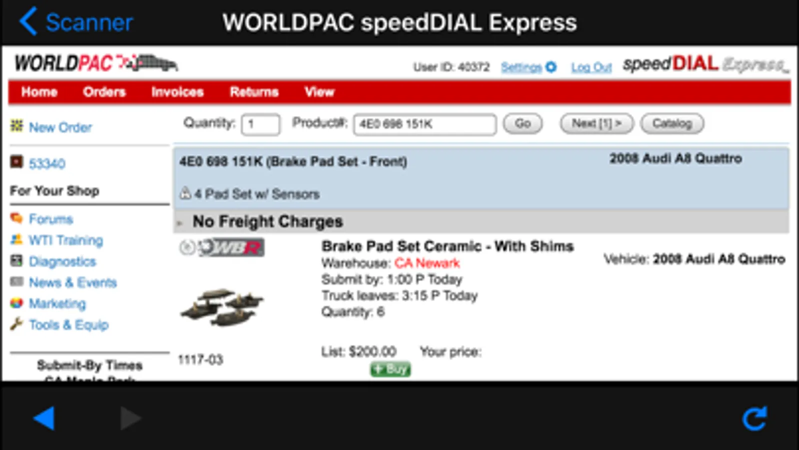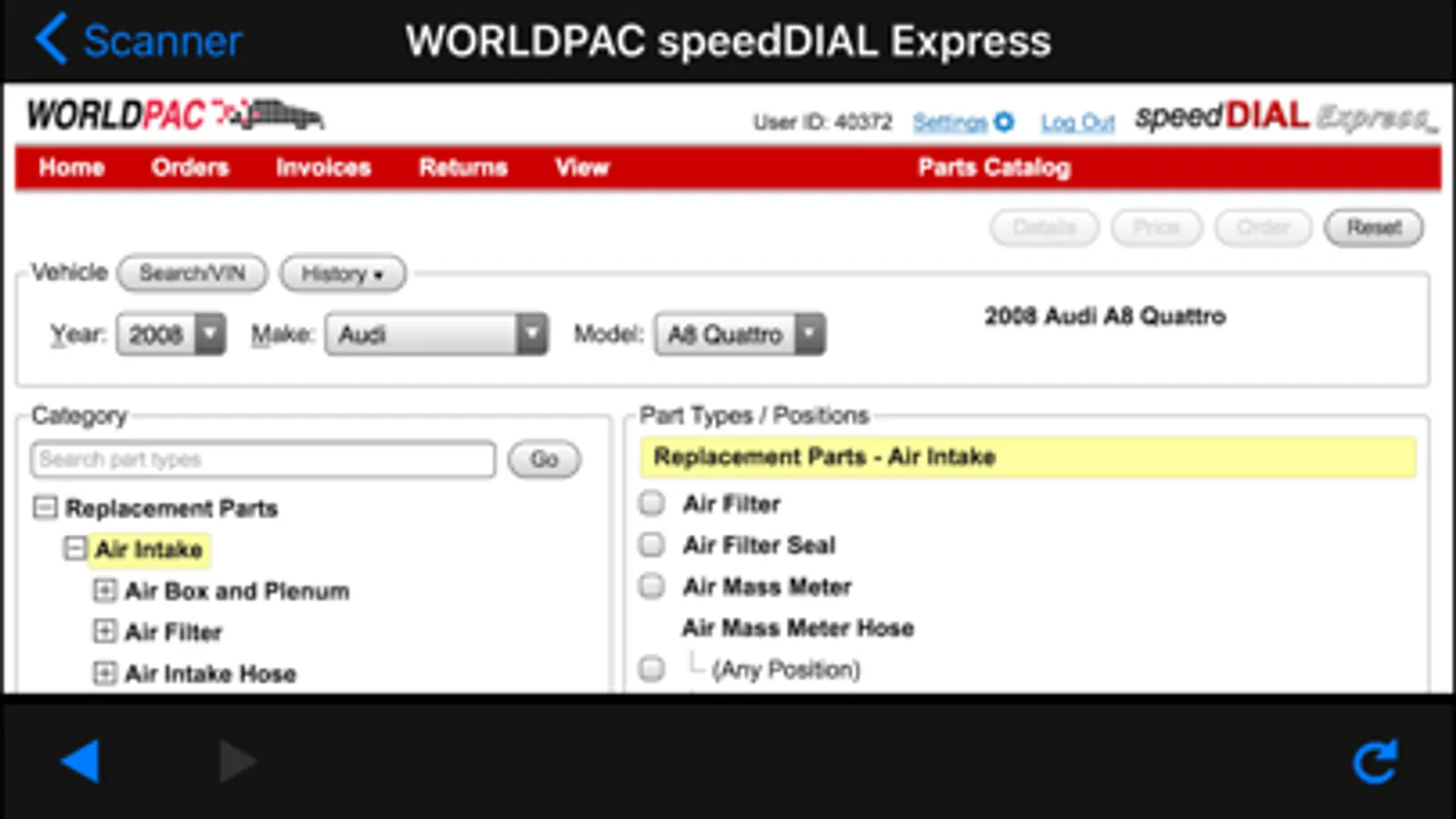 This app requires a valid WORLDPAC speedDIAL™ user ID and password. To become a WORLDPAC wholesale customer, apply at http://www.worldpac.com/acctapp/