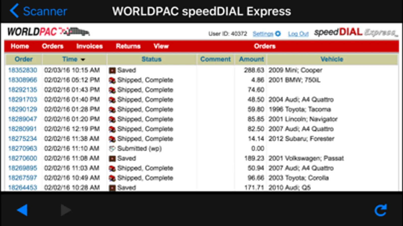 Scanned VINs can be instantly transmitted to speedDIAL™, WORLDPAC's professional cross-platform desktop application.
