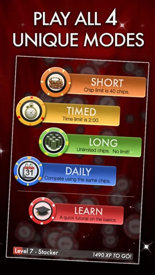 LONG - Unlimited chips, but be careful not to stack yourself into a corner.
