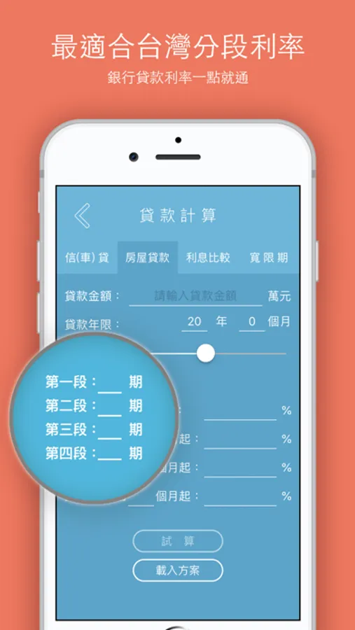提供多種模式貸款試算,多段式利率、可比較不同銀行不同條件下的繳息差額,讓您方便聰明選擇貸款銀行