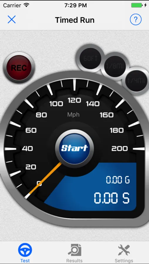 - Timed Run test to measure your 0-60mph, 0-60ft, 0-1/8mi, 0-1/4mi, 0-100km/h, 0-20m, 0-200m, 0-400m, and much more.
