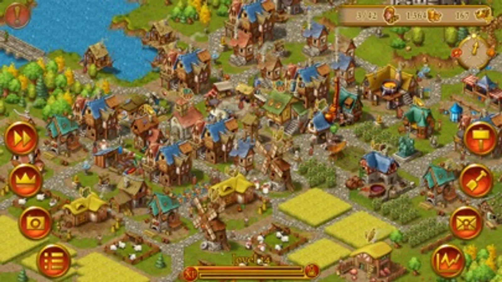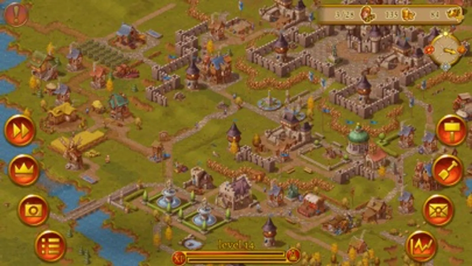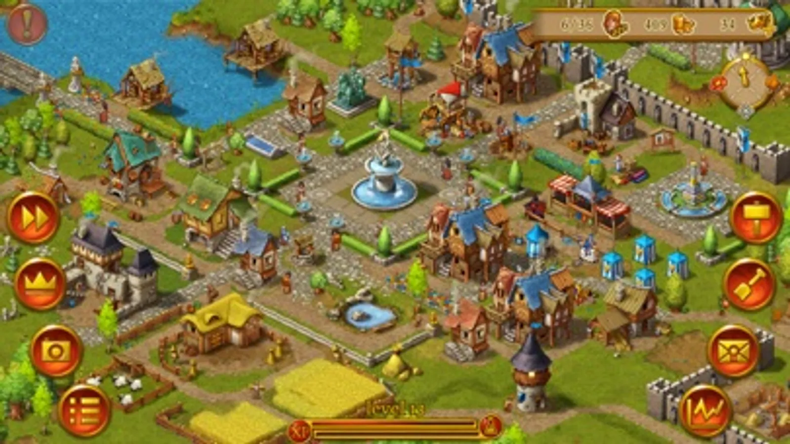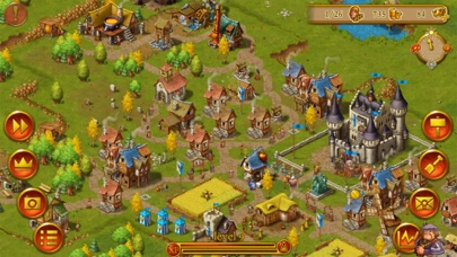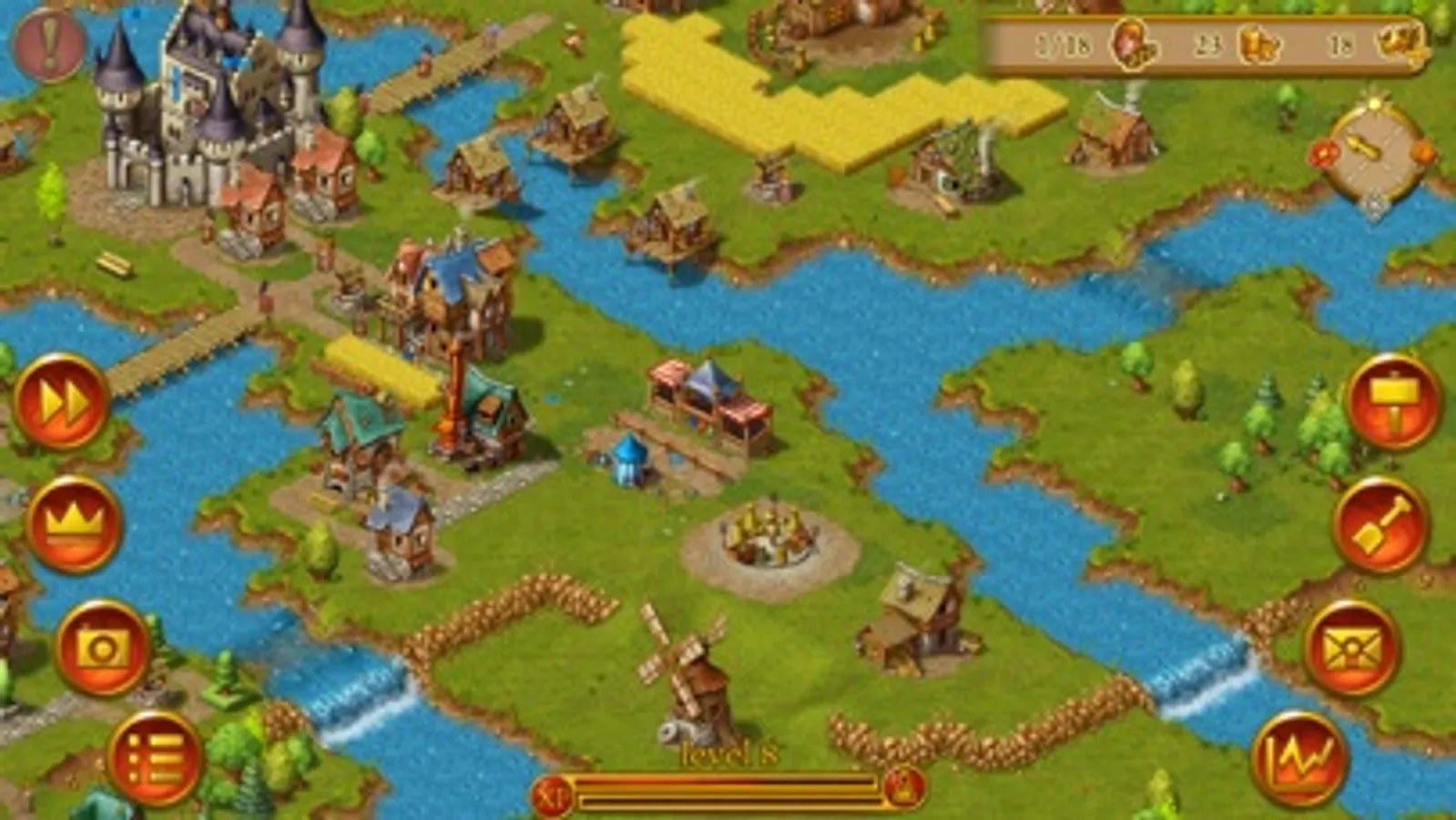 Develop your tiny village to a grand medieval empire with a thriving economy and happy villagers! Find spots for mining ore, harvest the crops of your farms and collect coins as taxes from your folk. Build jousting fields, taverns, marketplaces and beautify your city with impressive statues, magnificent monuments, and lush gardens. But there are also dangers lurking close by. Bandits are in the area, looking to plunder and pillage your peaceful town. Build barracks, guard towers and recruit brave soldiers to protect your citizens from harm. You rule the whole empire from your castle and make sure your inhabitants have fun and stay happy!