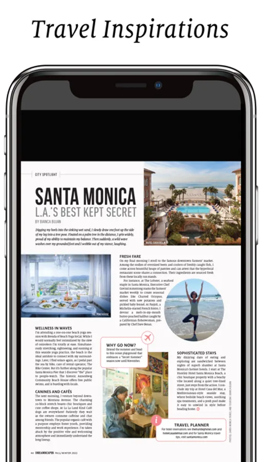 Dreamscapes is Canada’s premier travel & lifestyle magazine. It offers a wide selection of editorial features that will introduce you to destinations around the world, lifestyle topics and products.