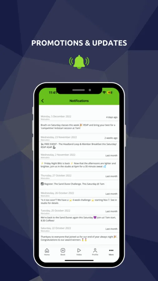 From this App you can view our live class schedule, trainer availability and upcoming events. As a registered app user you will be notified of current promotions and member discounts as well as be able to view our pricing options and memberships.