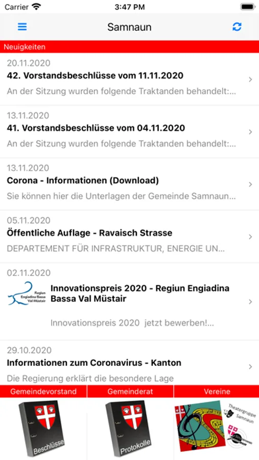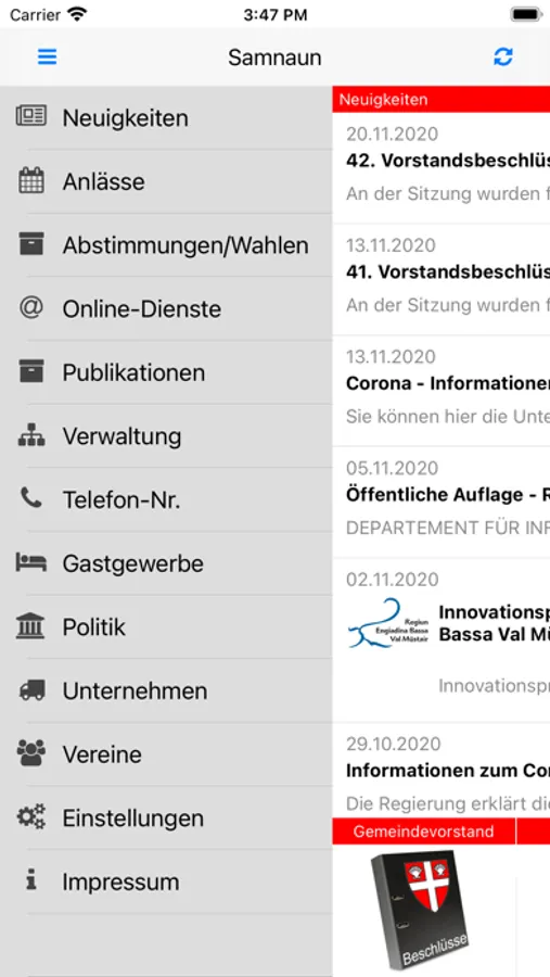 Alles Wissenswerte zum Leben in Samnaun: Zur Verwaltung und ihren Dienstleistungen, zur Politik, Wirtschaft, Gesellschaft und Freizeit. Aktuelle News und Veranstaltungskalender. Zudem viele Verzeichnisse von A bis Z und Detailinfos mit integrierten Gerätefunktionen (Karte, GPS, Telefon, E-Mail, Kalender usw.). Verwaltungsabteilung gesucht? oder Ihre nächste Papiersammlung? ein besonderes Restaurant? Ihr Ausflugsziel? Ihr künftiger Verein? Dann laden Sie unsere App am besten sofort auf Ihr Gerät.