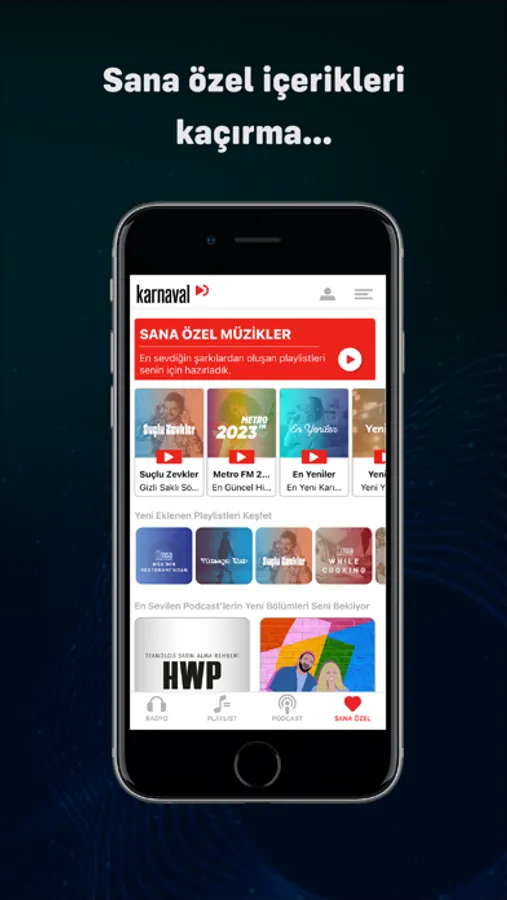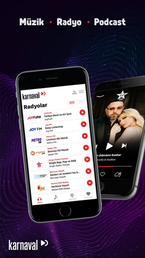 With the Karnaval application, you can listen to Turkey's most popular radios live and uninterrupted with the background listening feature no matter where you are. You can find original podcasts and playlists on a single platform for free.