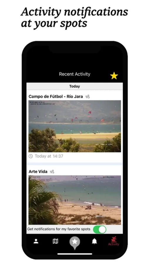 - AI-powered activity reports: stay tuned when there is watersports activity at your spots and get notified about it.