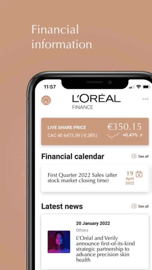 “L’Oréal Finance” provides you with the Group’s latest financial information.