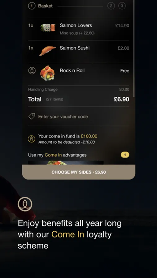 With our Come In loyalty scheme, stuffing yourself is no longer a bad thing! Ichi, Ni or San? Find out which one you are to take advantage of your rewards (#Sushidays with 20% discounts, a free Signature for your birthday and many other surprises to discover...). And don’t forget your precious sushi credit: for every order collected in shop or eaten on site, you get back 5% of the amount spent, to be used as you see fit. Last but not least, you’ll find your rewards directly in your basket each time you place an order so it’s easier to use them. Smile, you’re being pampered!