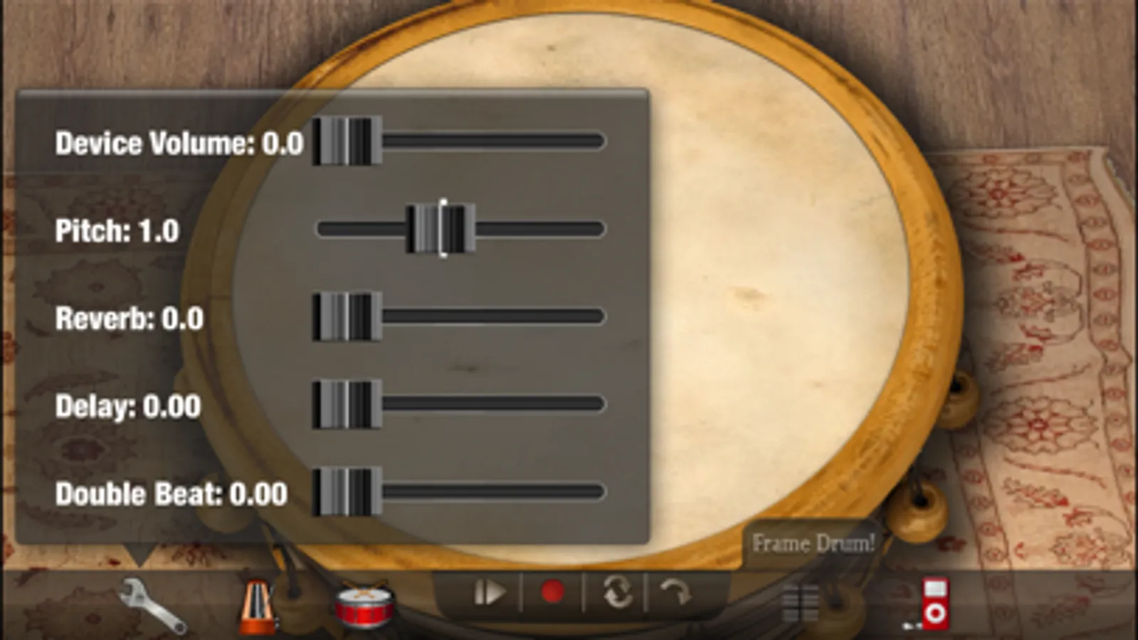 All of the features of the app combine to make you feel as if you are playing a real frame drum. There are 8 different single drum layouts to choose from- Bendir, Dirty Duff, Duff, Frame Drum, Large and Small Frame Drum, Tambourine, and Tambourine Jam. There are also 3 different 2 drum layouts- Small & Large Frame Drum, Bendir & Dirty Duff, and Tambourine & Frame Drum, with more to come.