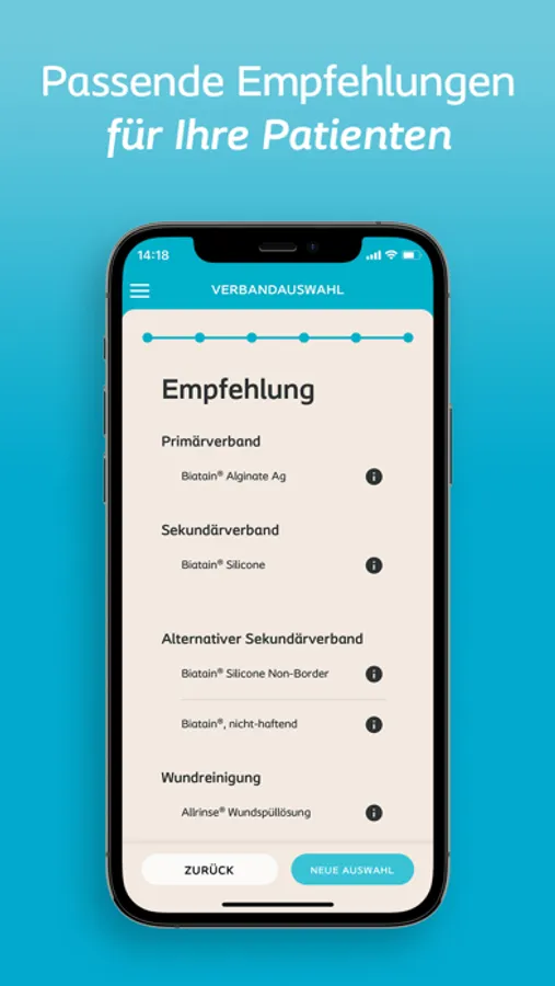 - quick selection of the appropriate bandage (based on an intuitive wizzard)
