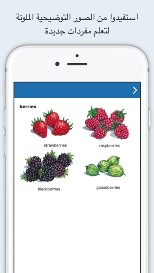 تصفح مئات الصور التوضيحية الملونة واضغط عليها لتكبيرها ولتعلم كلمات جديدة تغني مخزونك من المفردات•