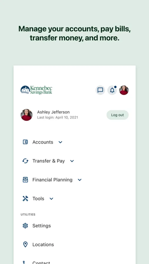 Kennebec Savings Bank's mobile banking app is the ultimate on-demand service for managing your accounts. Instantly check your balance, view account history, transfer funds, pay bills, deposit checks, and more! Member FDIC.