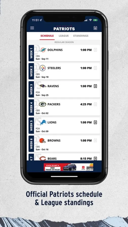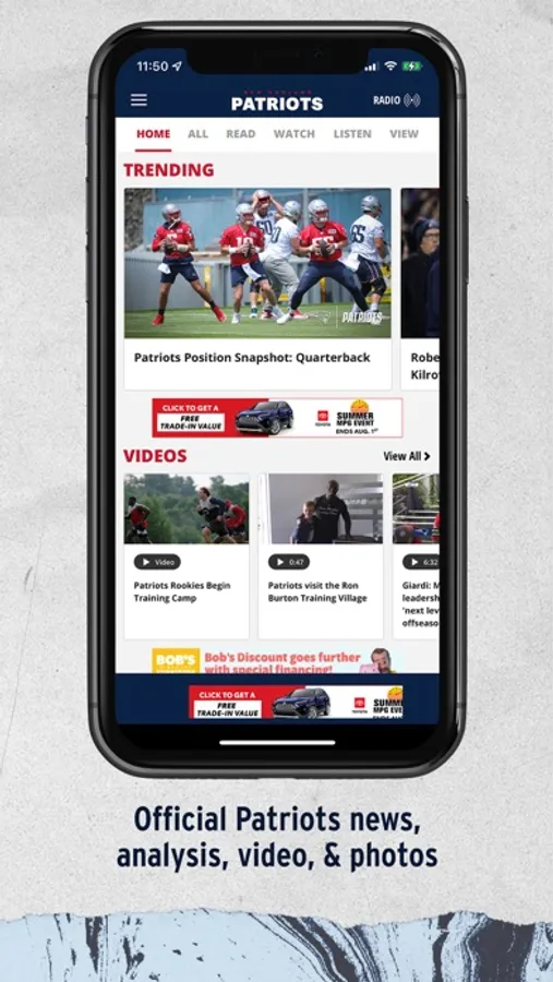 The New England Patriots official app opens unlimited features and content for every Patriots fan: LIVE game commentary, play-by-play statistics, scores, game highlights, the latest team news and much, much more. Fans in New England can listen to the live 98.5 The Sports Hub radio game broadcast*. Plus, there’s instant access to the latest news, analysis, roster, and game schedule. Be the first to know about your team direct from Foxborough!