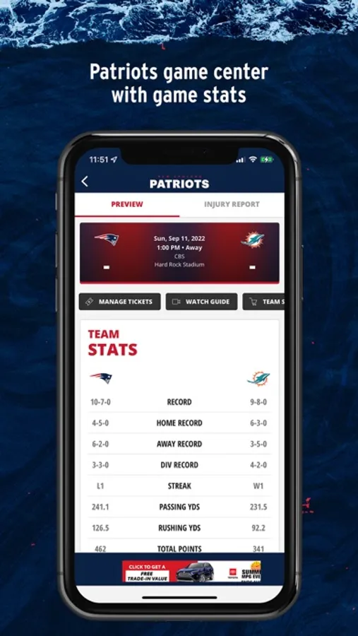 - Advanced Patriots Game Center with LIVE play-by-play, game commentary and game stats