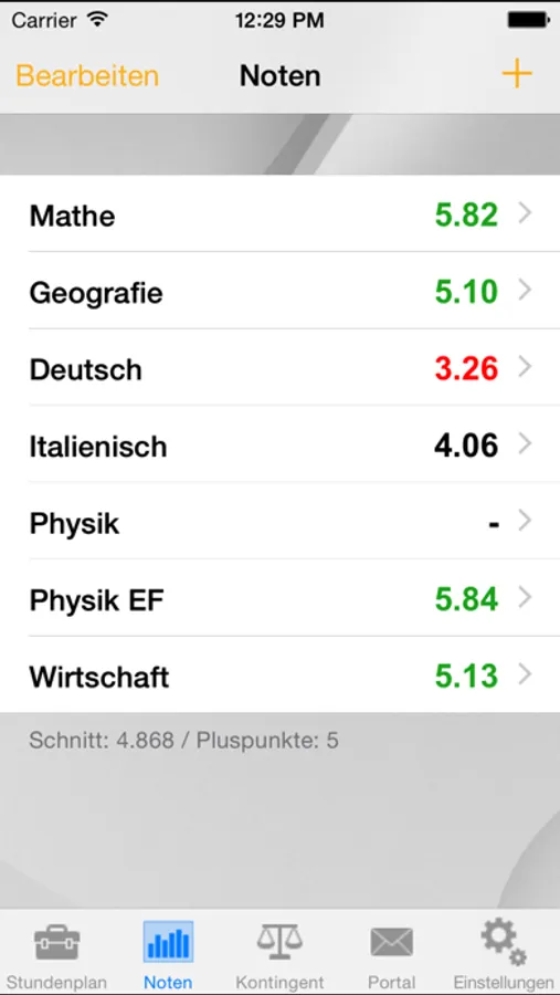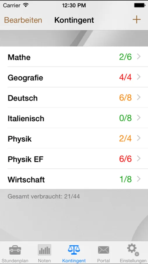 Mit der Kontingents-Funktion hat man immer den Überblick über seine Absenzen und man kann auf einen Blick sehen, in welchen Fächern man nicht mehr fehlen sollte, weil das Kontingent schon aufgebraucht ist.