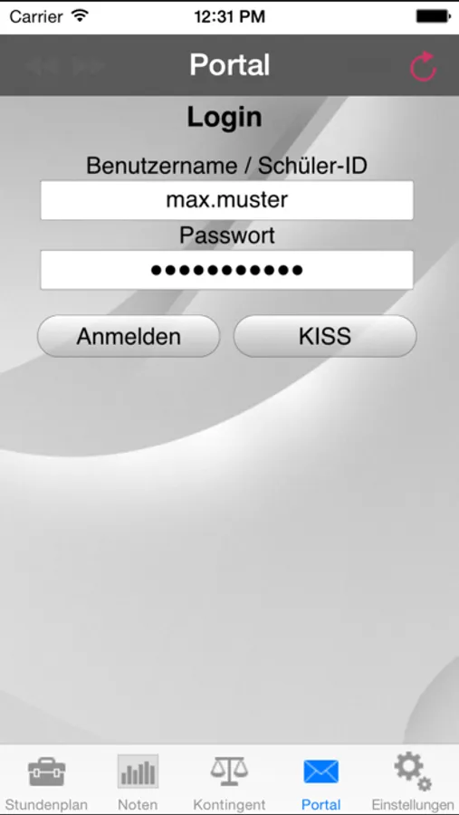 Auch das Kiss und das Portal fehlen natürlich nicht in der App. Man kann sich mit gespeicherten Login-Daten sehr komfortabel und schnell durchs Kiss und die Mails usw. klicken.