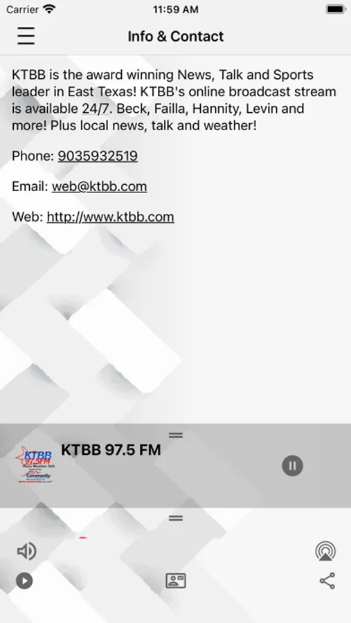 KTBB – 97.5 FM and 600 AM – is East Texas’ only local news radio. Because KTBB is the only locally-owned, locally-managed and locally-committed broadcast station in the Tyler-Longview market, East Texans know to count on KTBB for what’s in the news and what’s on their minds. KTBB combines its local news and air staff with the top syndicated radio talk shows in the country.