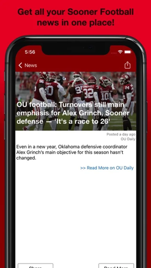 SoonerApp is ad supported, and all headline previews link you directly to the site content. Share the links with all OU Sooners fans through your own Twitter and email accounts.