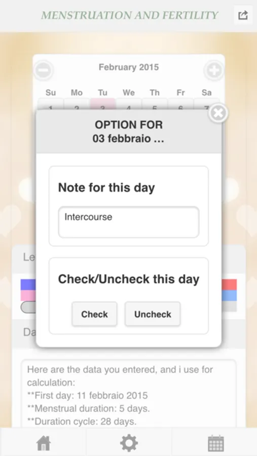 This app keep track of your menstrual cycles and to predict menstruation periods.