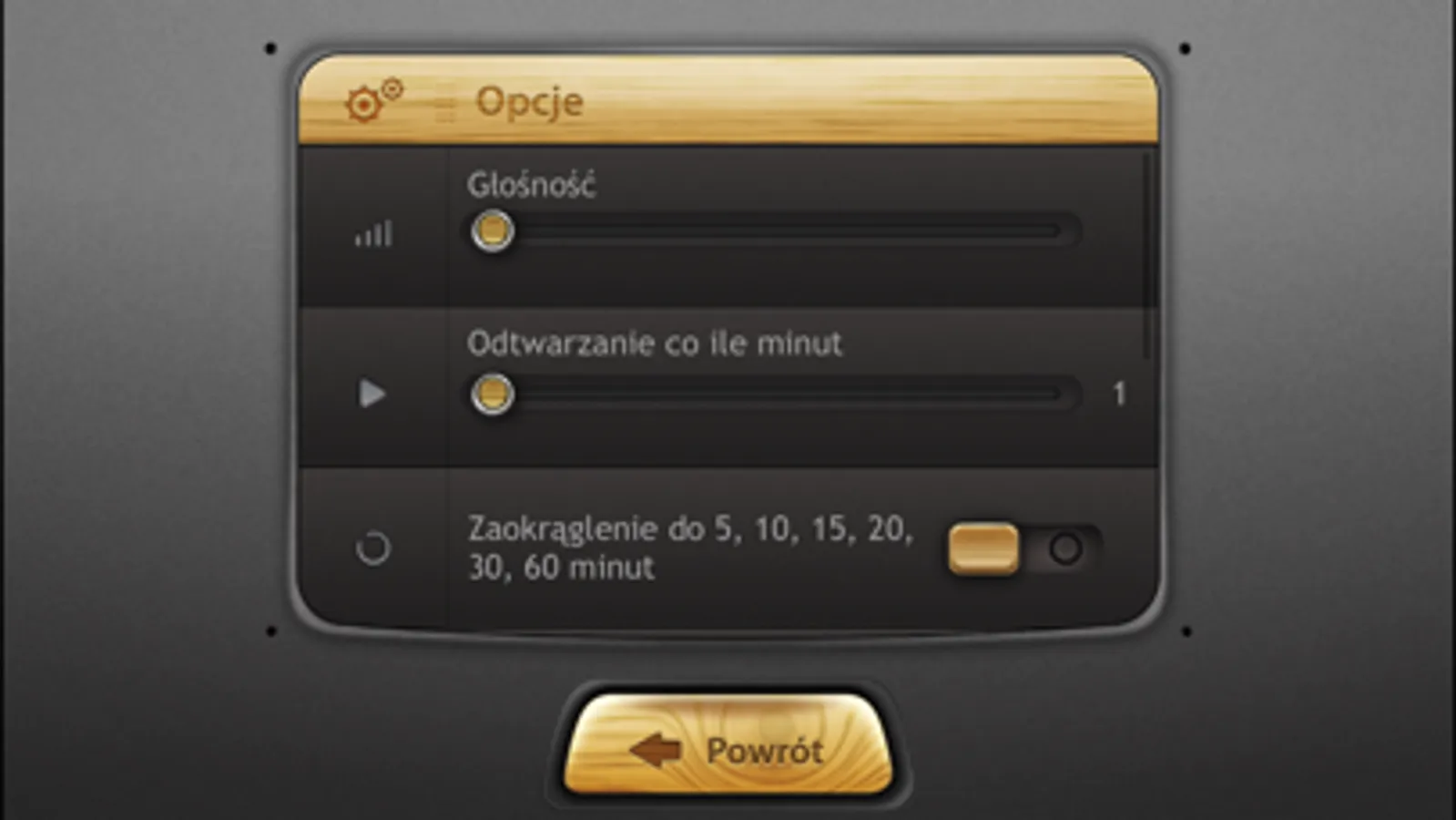 Aplikacja działa i ogłasza czas nawet po jej opuszczeniu - więc aby wyłączyć odtwarzanie należy wyciszyć głośność przed jej opuszczeniem - można do tego użyć przycisku-głośniczka w lewym górnym rogu głównego ekranu aplikacji.