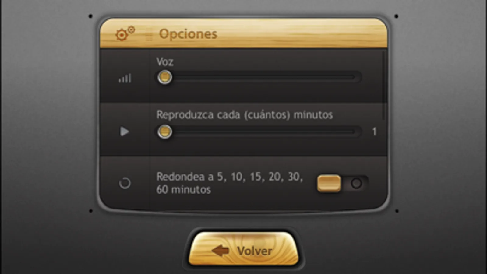 Una voz natural anuncia la hora con determinada frecuencia ajustable por el usuario, cada 1 a 60 minutos.