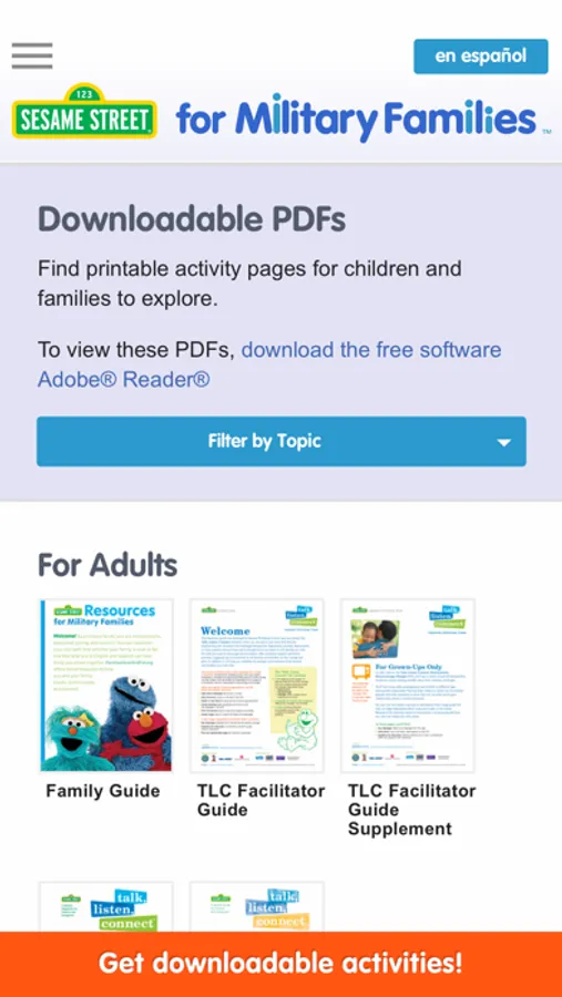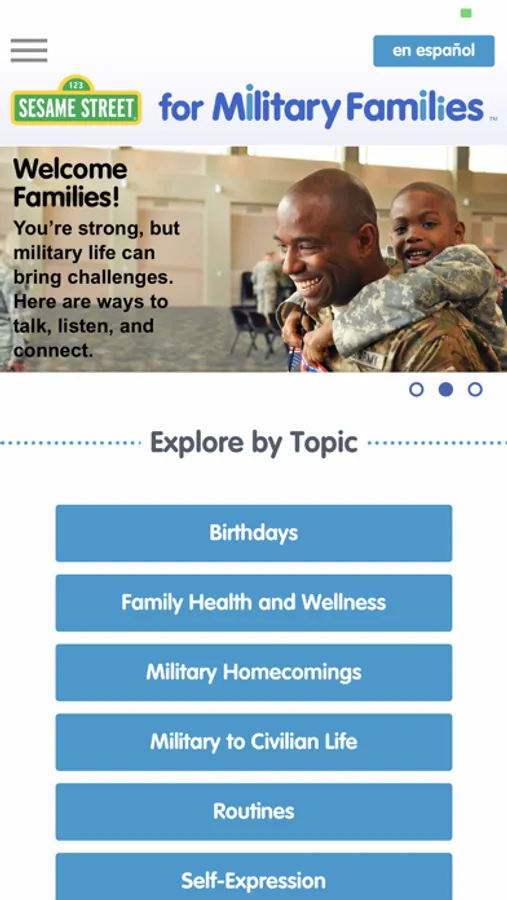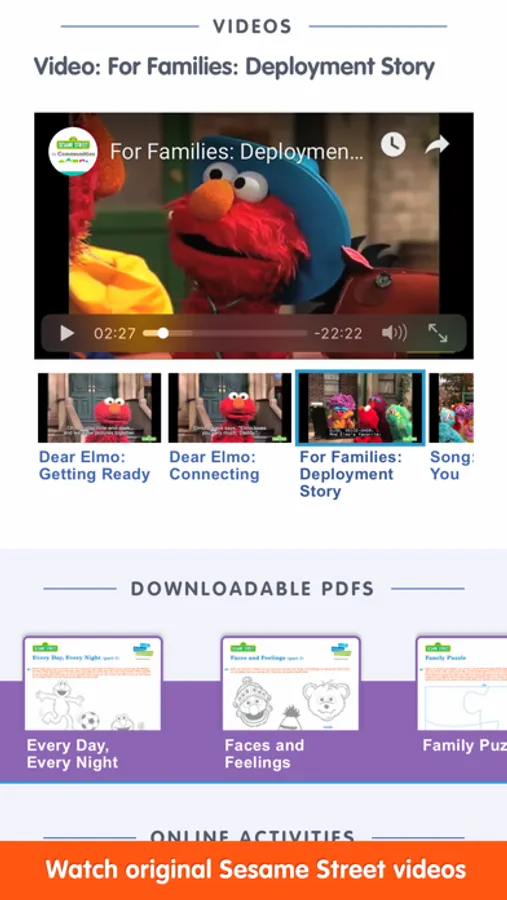 Developed for parents and caregivers: The Sesame Street for Military Families app puts all of Sesame’s bilingual (English & Spanish) resources for military families right in your pocket! Use your mobile device to access engaging videos, articles, storybooks, parent guides, and more to help you support your preschool and school-aged children as they encounter transitions common to military families.