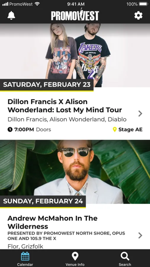 • View upcoming shows at PromoWest venues including KEMBA Live!, Stage AE, MegaCorp Pavilion, Newport Music Hall, The Basement, and A&R Music Bar