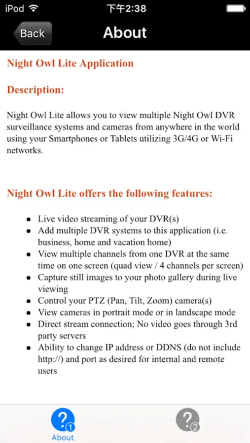 WARNING: This application uses a data stream that will connect to your DVR surveillance system. When using the 3G/4G network, the live video feed from your DVR will be considered "downloads" from your phone service provider and it will contribute to any download limit your phone data plan may have. If you exceed your data plan limit, this may result in additional usage charges. It is recommended to contact your phone service provider to know the limits of your data plan before using this video streaming application.