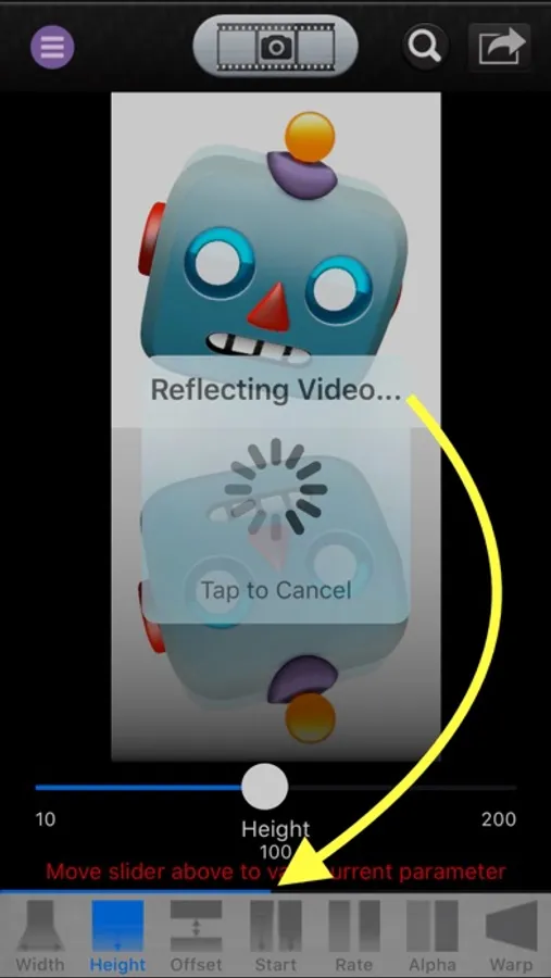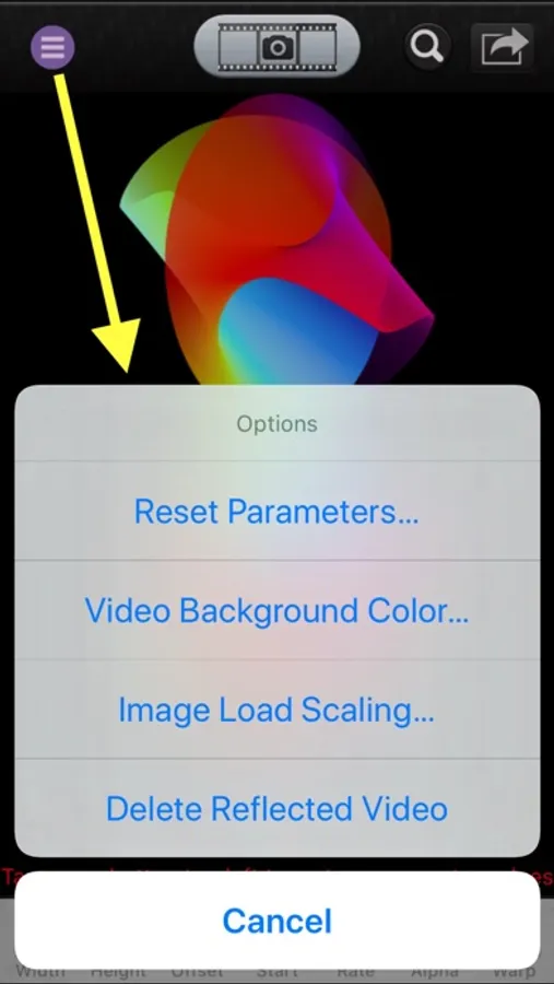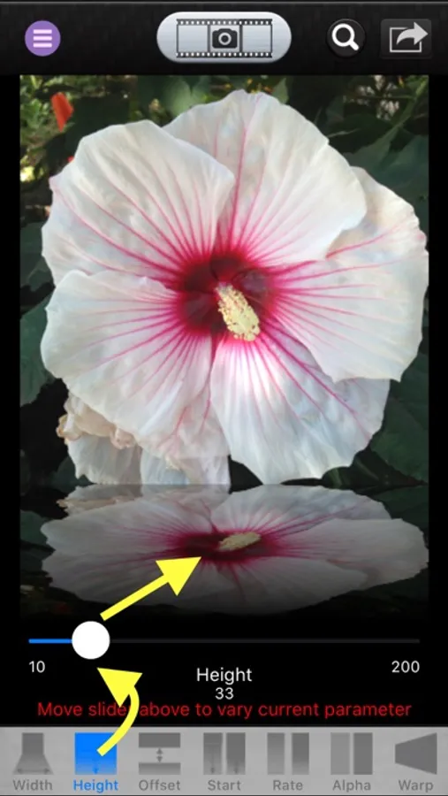 • Select parameters to edit from a tab bar, change their values with a slider.