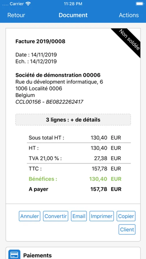 - Convertir vos documents rapidement (par exemple convertir un devis en facture).